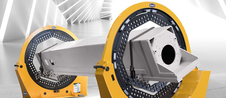 Il ROTATORIX R 2000/950 utilizza due sistemi di bloccaggio reversibili e permette la completa rotazione attorno al proprio asse dei pezzi su cui si sta lavorando, in modo da consentire al lavoratore di accedervi facilmente da tutti i lati.